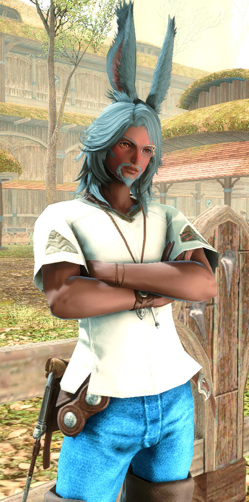 It was at this job he would meet a short, blonde viera woman who would transform his life. Every trip she made to Ul'dah to sell her family's goods, he'd see her, exchange words here and there, and finally muster enough courage to ask to court her. This viera woman, Yrln, would later become his wife and he'd move to live with her and her family on their farm, and would become joint-heir to the farm, and partner to his wife's heritage.