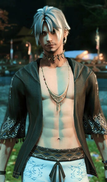 Later, learning of an affair of his wife and a Hyur business-associate, he became distraught, planning to divorce and move away. However, he learned the reasoning behind his wife's actions and the truth behind her heritage, and he chose out of the goodness of his heart to forgive her and vowed to be at her side regardless. He also adopted the child, born as a result of that affair, Terrowin. He regarded him as his own son, and did not give him any lesser treatment than his other children.